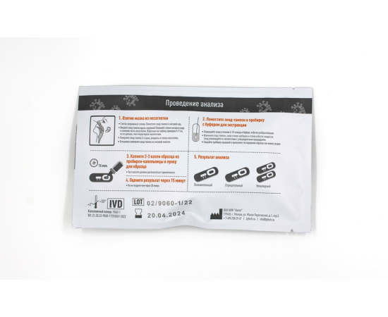 | Набор реагентов для выявления антигена коронавируса SARS-CoV-2 методом иммунохроматографии EasyTest SARS-CoV-2 Ag, 1 тест | Тест-кассета - 1 шт, буфер для экстракции в пробирке-капельнице - 1 шт, зонд-тампон - 1 шт | 1 | IVD |